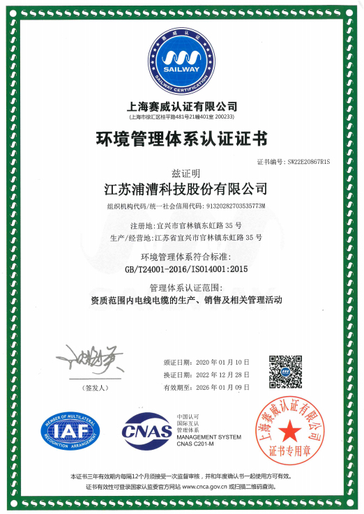 环境管理体系认证证书