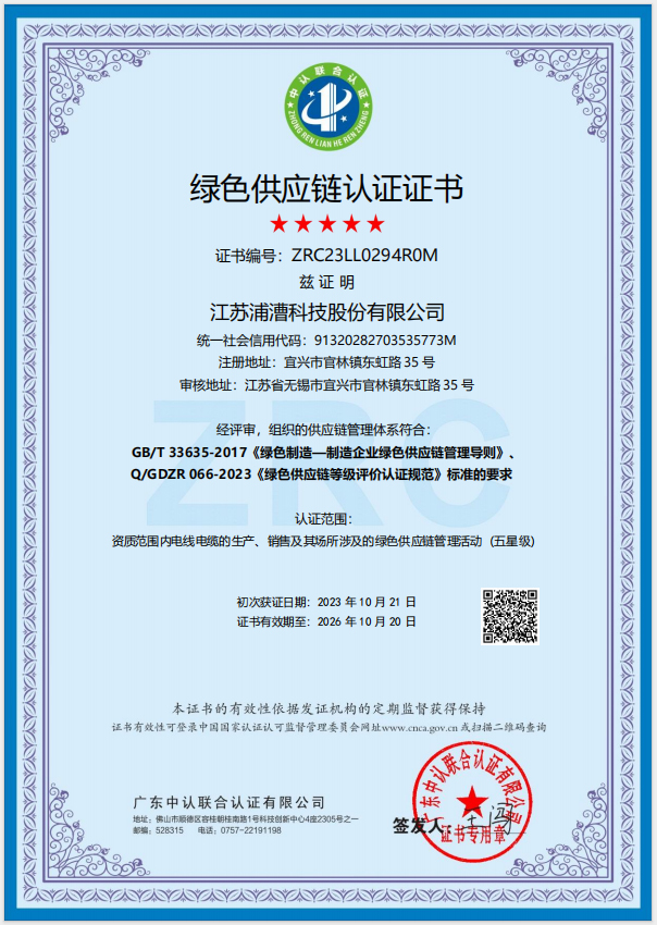 绿色供应链认证证书