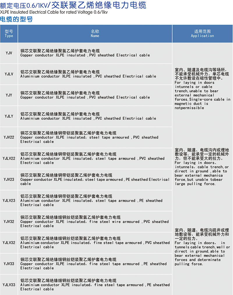 交联聚乙烯绝缘电力电缆额定电压0.6/1KV